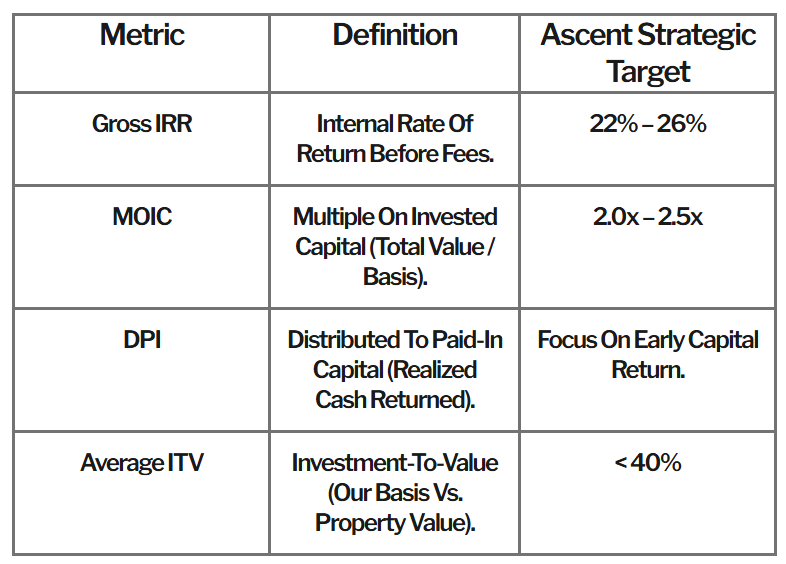 Compliance Note: In accordance with SEC regulations, all performance data presented reflects the total portfolio performance of Ascent Capital. Individual asset “extracts” are shown alongside total fund net-of-fee returns to provide a complete and fair representation.